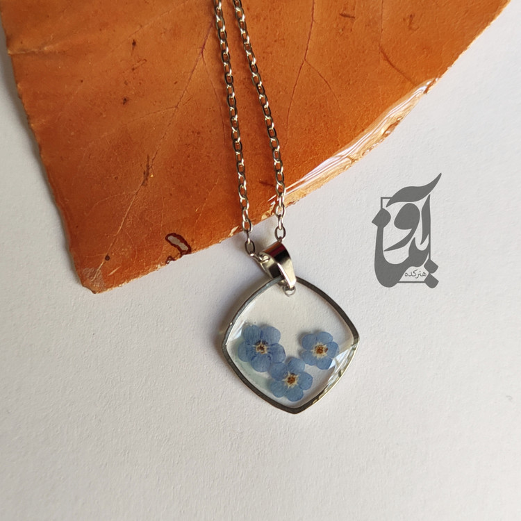 گردنبند دستساز رزینی با گل طبیعی