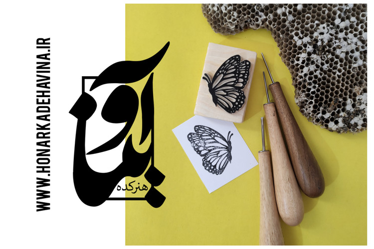 قیمت و خرید آنلاین مهر دستساز لینولئوم با پایه فوم به شکل پروانه